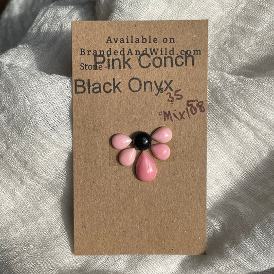 Pink Conch / Black Onyx Cabochon - Mix138