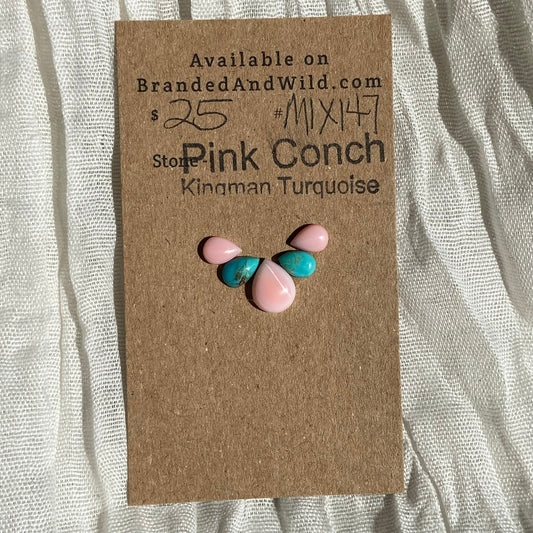 Pink Conch / Kingman Turquoise Cabochon - MIX143