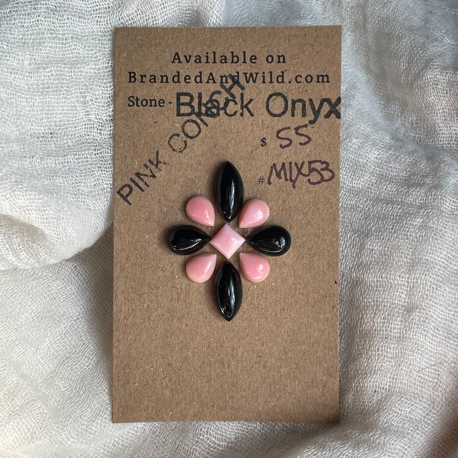Pink Conch / Black Onyx Cabochon - Mix53